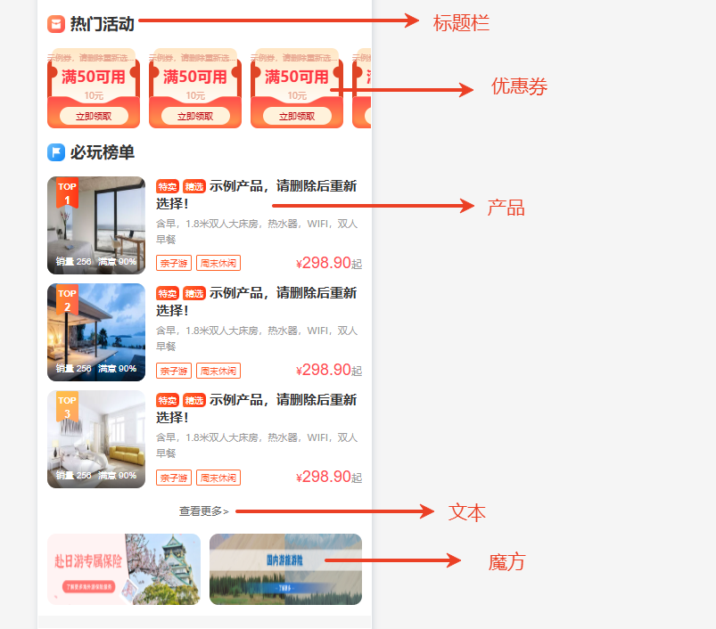 POI地址:用于選擇帶有地址的商品(景點、酒店、露營、美食),一個組件僅支持一個商品,支持設置布局樣式。