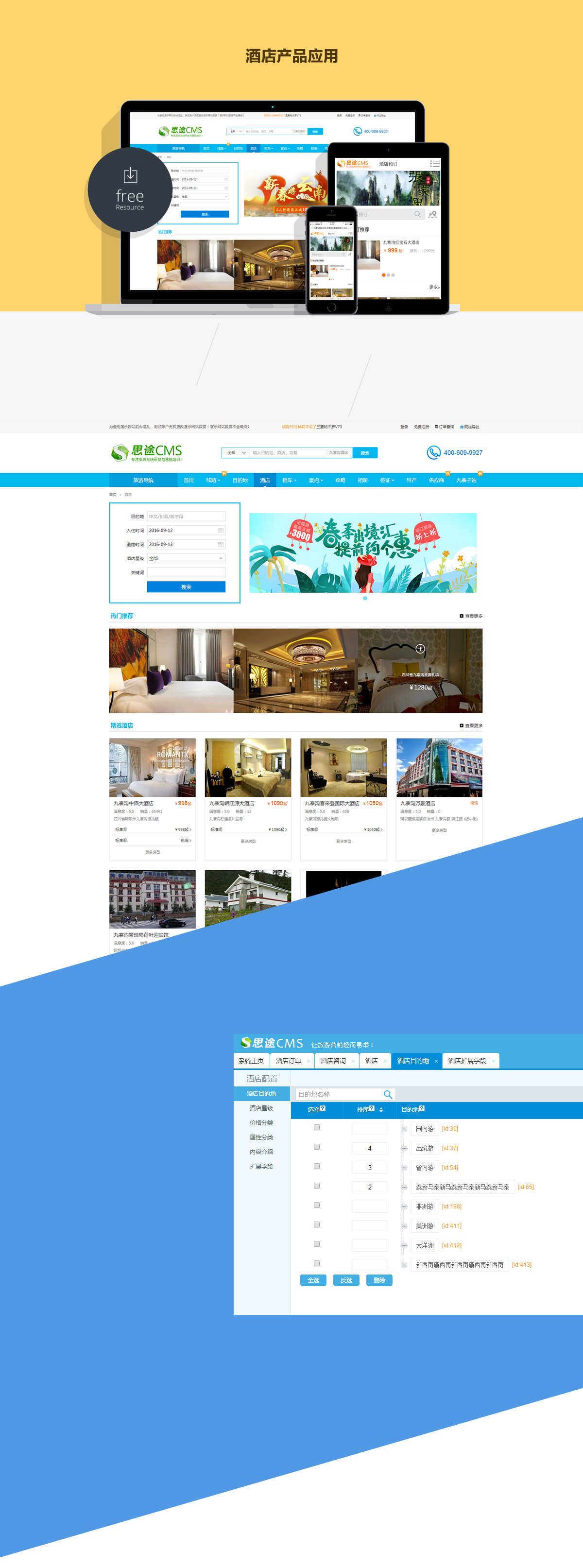 B2C平臺酒店產品應用是針對思途CMS的擴展模塊。安裝后,可以在思途CMS中擴展一個酒店產品管理模塊,幫助平臺管理員進行酒店產品的發布、管理、銷售;同時,前臺會員也可通過酒店預定功能模塊進行酒店產品預定。