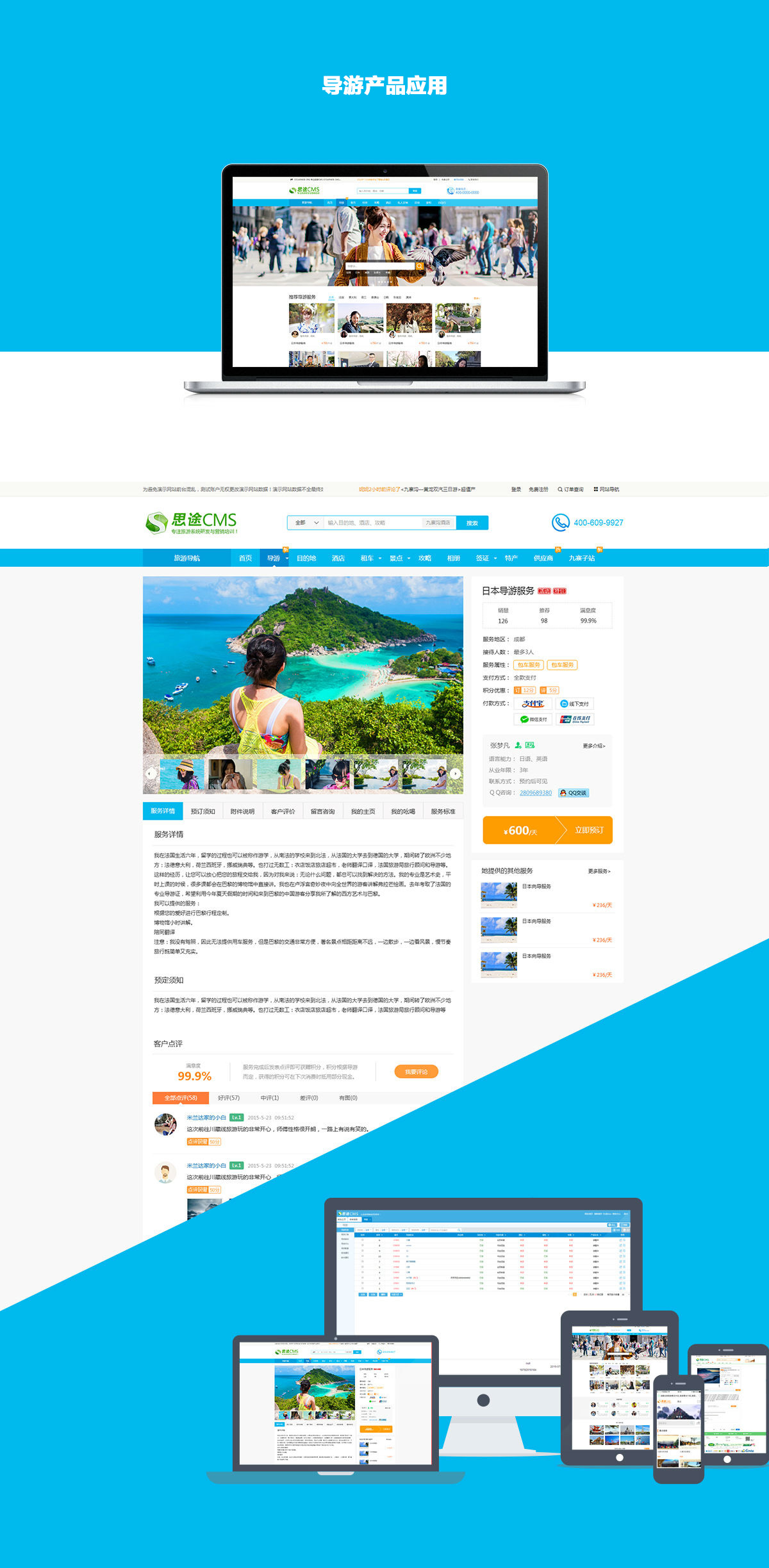 7. 導游咨詢和評論:回復游客咨詢,游客對購買的產品服務進行評價;