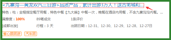 (1)產(chǎn)品標(biāo)題:顯示到產(chǎn)品標(biāo)題位置,產(chǎn)品標(biāo)題的編寫建議清晰,準(zhǔn)確,利于游客通過(guò)標(biāo)題直觀比較產(chǎn)品的主要區(qū)別。方便客戶選擇。