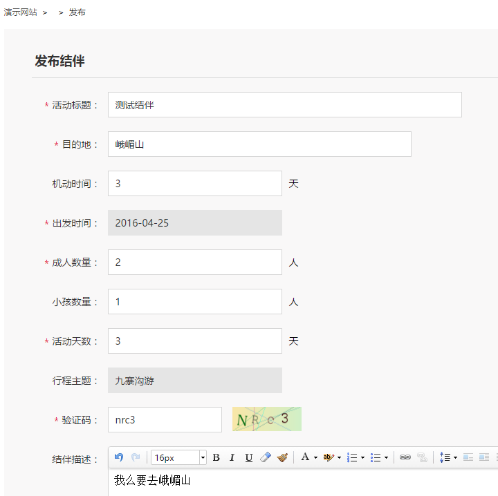 6、點擊發(fā)布后,您的結(jié)伴就完成了?,請登錄后臺查看您的訪客提供的結(jié)伴需求吧