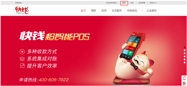 1、登錄快錢官網,點擊右上角登錄按鈕;