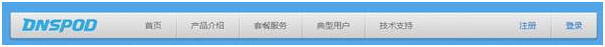 1、訪問 https://www.dnspod.cn網站,在DNSPod官網首頁的右上角,有【注冊】,如下圖所示,點擊【注冊】按鈕