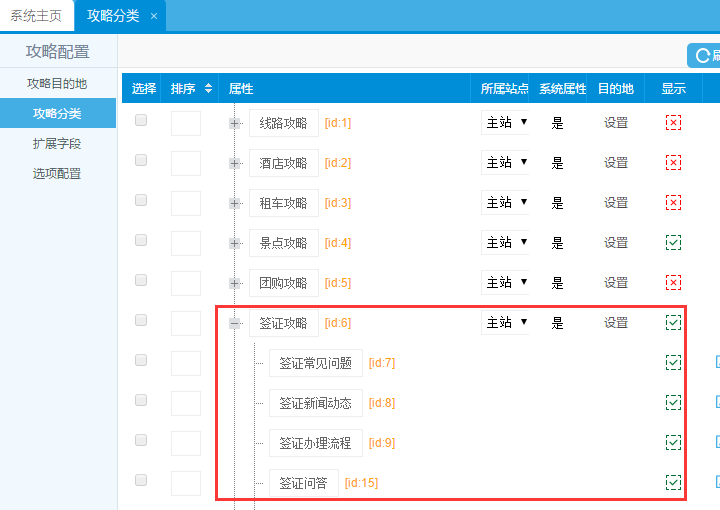 三、進入“攻略分類”設置好類別,然后全部開啟: