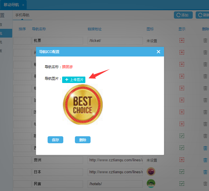 一:手機(jī)版主導(dǎo)航后臺設(shè)置:移動(dòng)版設(shè)置-移動(dòng)導(dǎo)航
