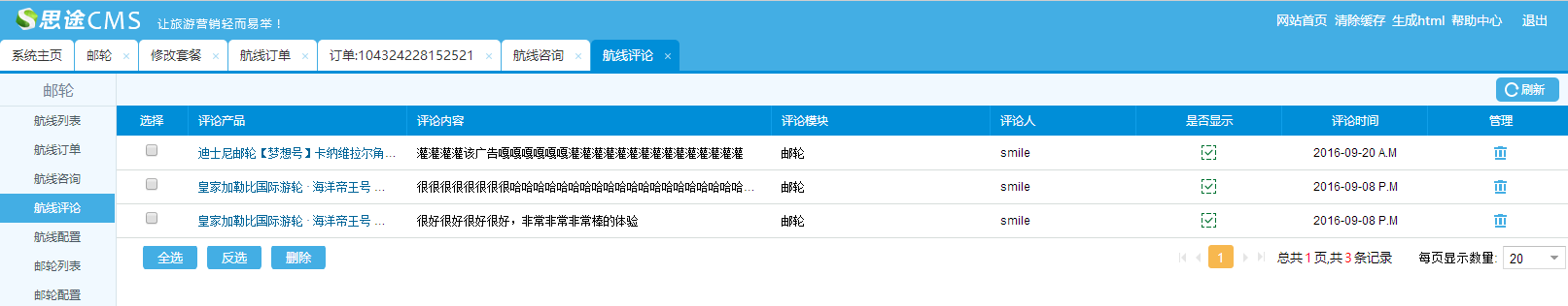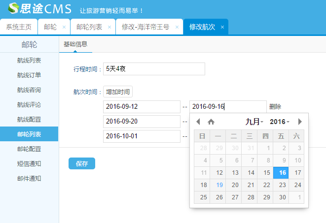 (3)添加郵輪航次:列表可編輯管理和刪除