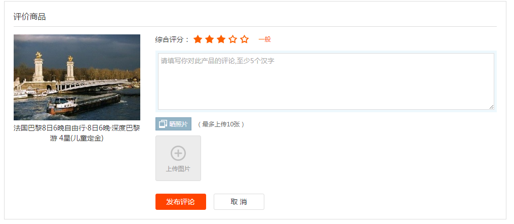 在會員中心>未點評訂單>我要點評時,可以選擇綜合評分