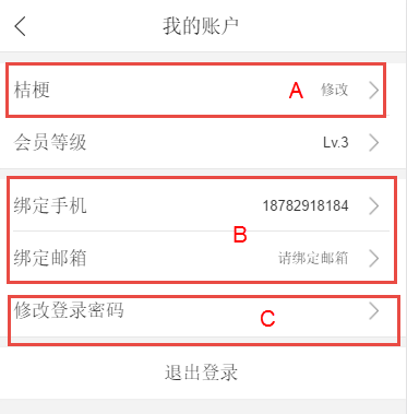 B、點擊綁定手機和綁定郵箱可跳轉到綁定頁面