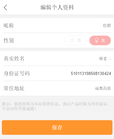 A、點擊昵稱,進入個人資料的編輯頁面