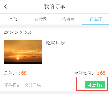 A、待點評訂單:點擊“馬上評價”
