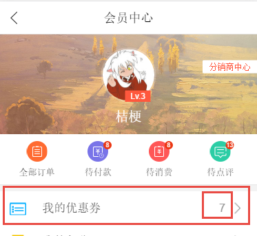 A、數量顯示為已領取且未使用的優惠券數量
