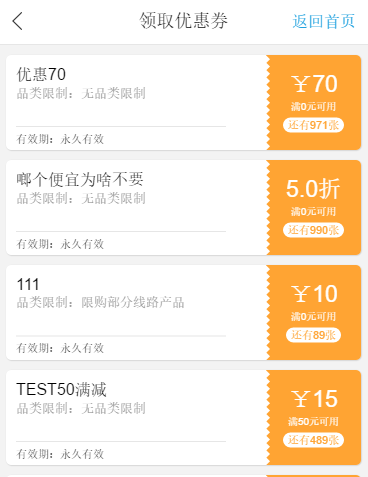 C、點擊領取優惠券,則進入優惠券領取頁面