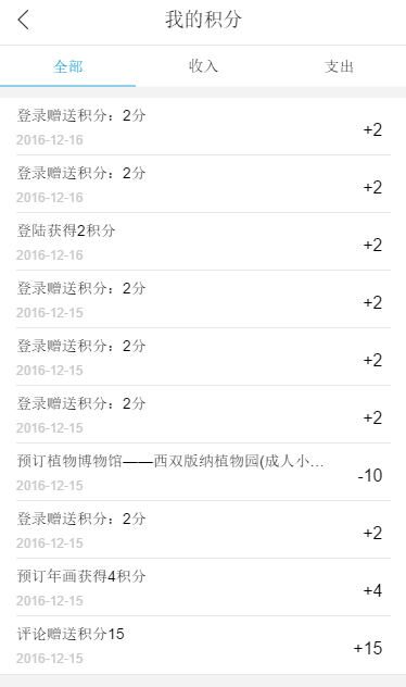 (5)我的積分:包含全部、收入、支出
