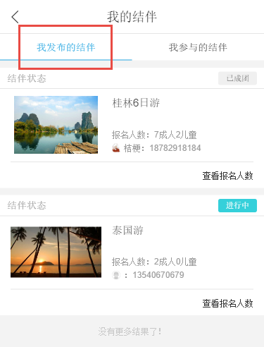 3)所有的結伴都可點擊“查看報名人數”,以及參與結伴人員的聯系方式