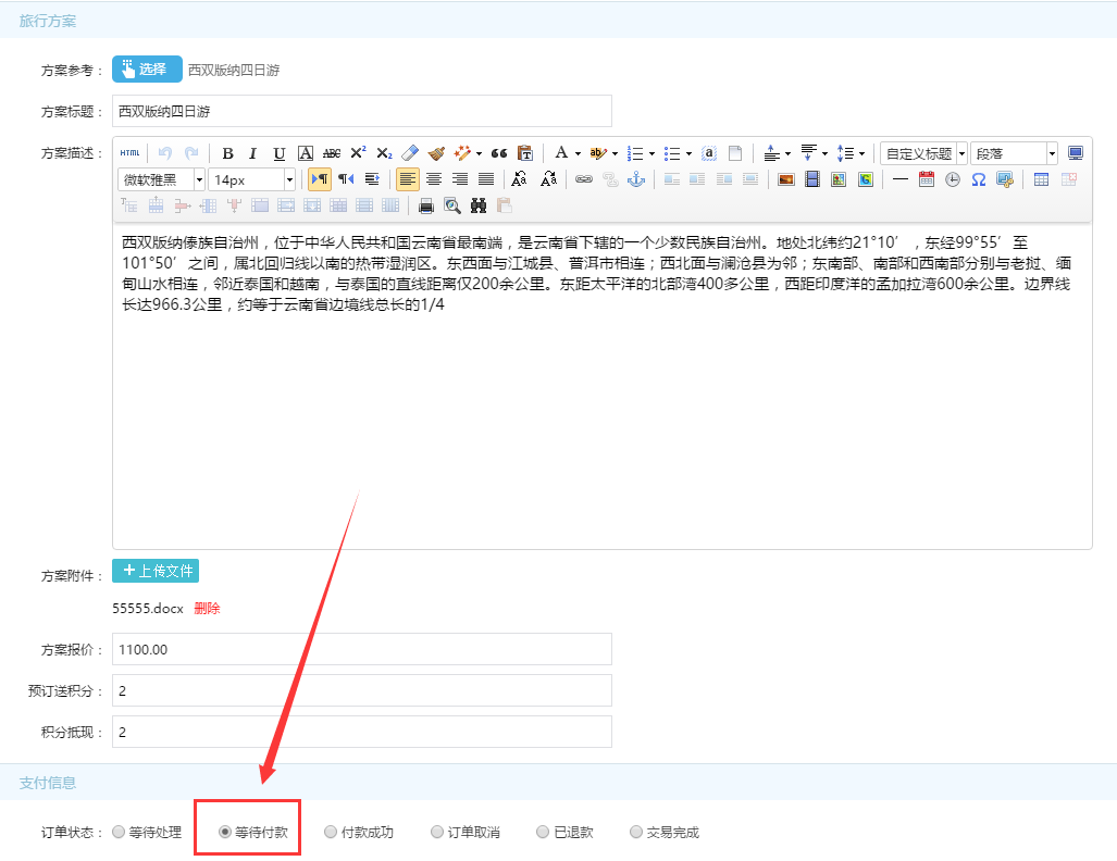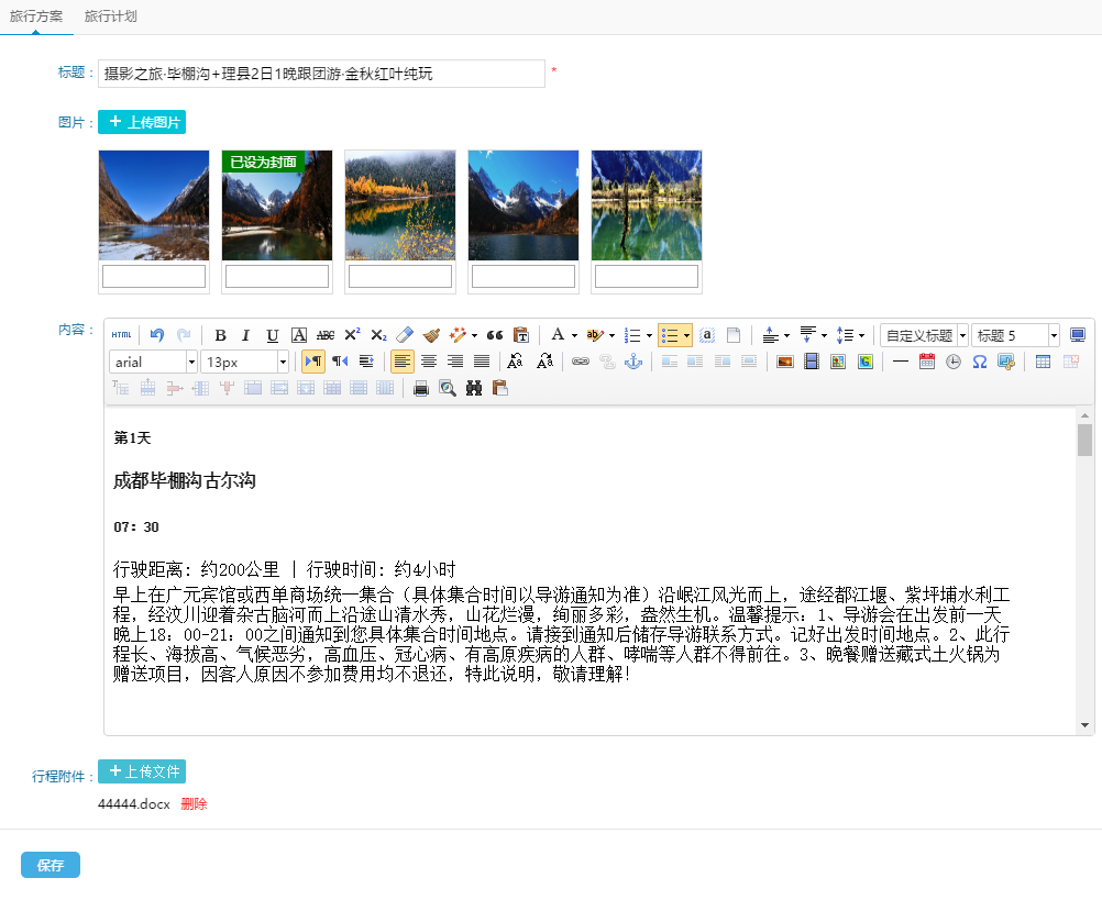 2、旅行計劃:包括目的地、出發地、出發日期、天數、人數和屬性