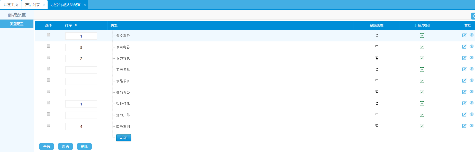 2、商城配置:用于商城所兌換產(chǎn)品的分類,僅支持一級(jí)