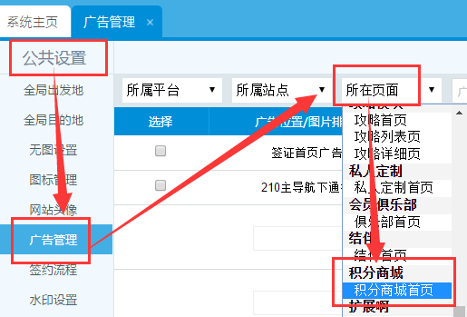 3、積分商城頁(yè)面的廣告位添加在公共設(shè)置--->廣告管理--->積分商城首頁(yè):添加廣告