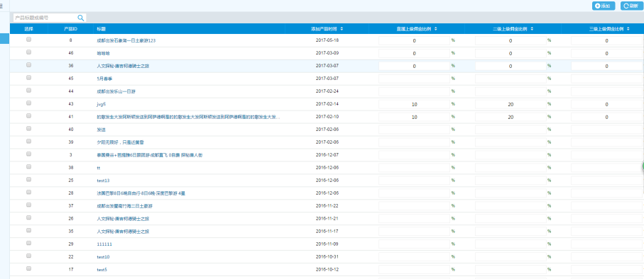 2)按照不同的產品設置返傭比例,支持設置線路或比例的方式,支持設置具體產品的返傭比例,支持平臺收入百分比