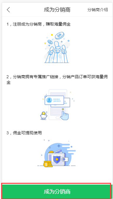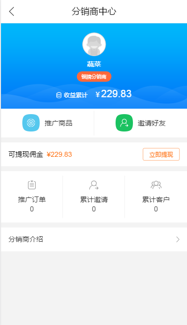 2.分銷商中心進行分銷產品、體現、管理下級和邀請好友