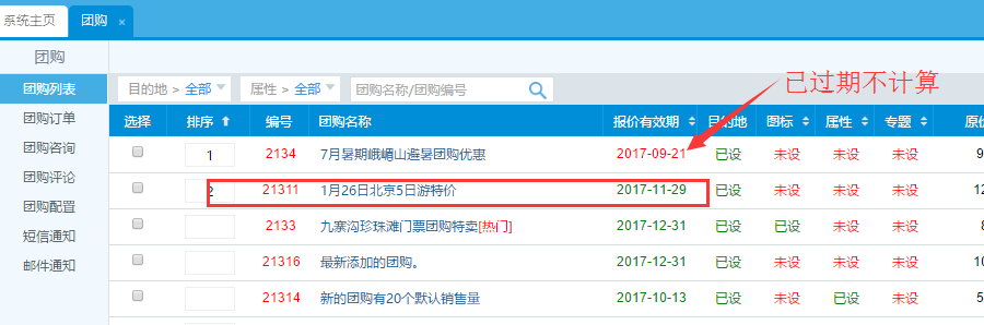 有數字排序時,按數字從小到大排序,只顯示排序為1的團購產品(已過期的產品不計算)