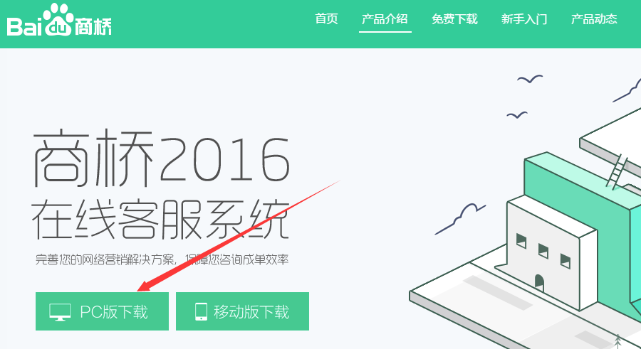 點擊“立即使用”后將自動連接到百度商橋官網http://qiao.baidu.com/home/index.html,請點擊“立即下載”,下載百度商橋客戶端: