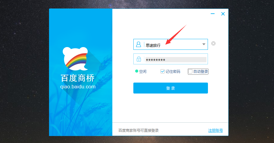 注意:此處的賬號密碼就是剛才我們在百度競價推廣平臺注冊的賬號密碼: