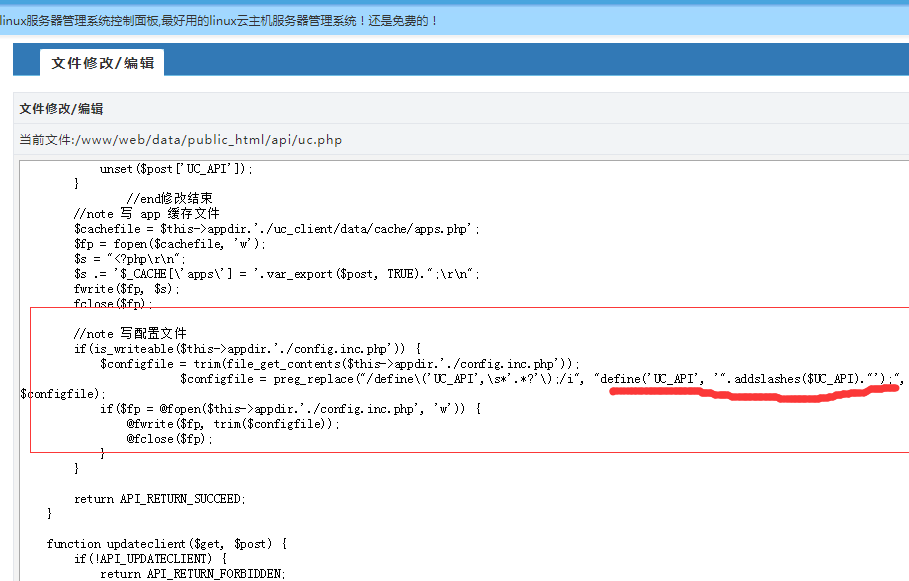 所以建議用戶可選擇忽略這個提醒,如果用戶沒有使用DISCUZ的Ucenter接口,可以將網站下的/api/uc.php更名,這樣也能避免這個提示,但是更名后將不能正常的使用discuz的相關整合功能,如ucenter?。