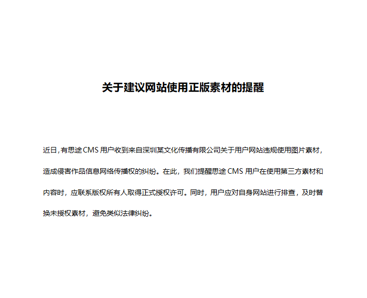關于建議網站使用正版素材的提醒