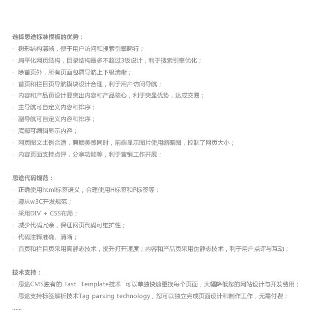 (1)思途CMS獨有的Fast  Template技術 可以單獨快速更換每個頁面,大幅降低您的網站設計與開發費用;
