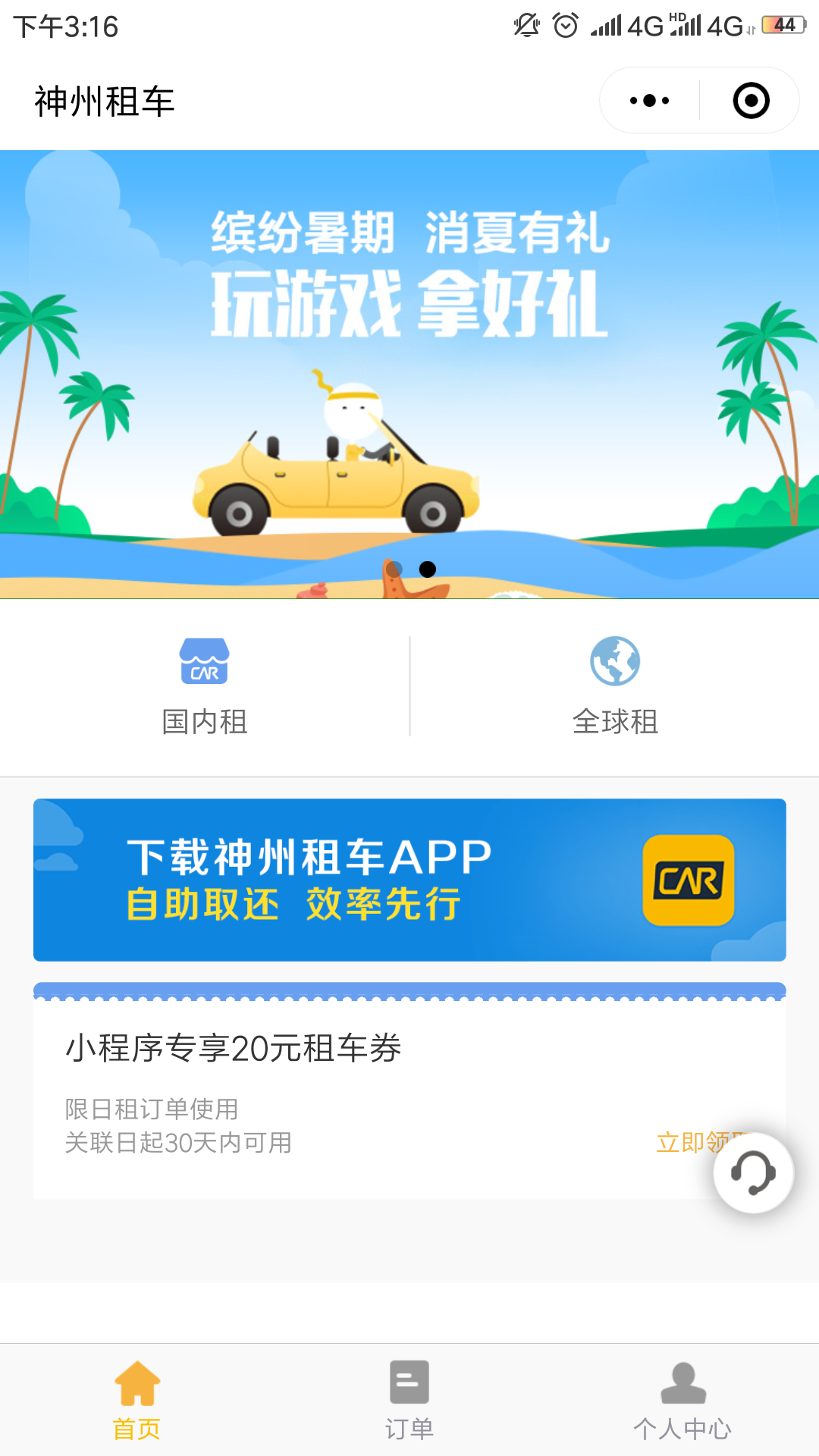 該模板重點(diǎn)突出了該小程序的租車業(yè)務(wù),在首頁向訪問者推薦APP下載、以及小程序?qū)O碜廛噭弧T趪鴥?nèi)租功能板塊下,游客可以自主選擇取車還車門店,確定后可根據(jù)該地目前現(xiàn)有的車型進(jìn)行選擇。