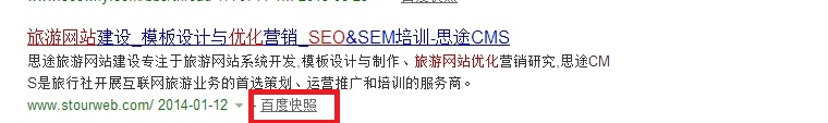 百度推廣只要您付費(fèi)就能帶來源源不斷的訪問量,但是網(wǎng)頁有百度快照不代表網(wǎng)站就有源源不斷的訪問量,如果想讓自然搜索結(jié)果排名靠前獲得免費(fèi)的網(wǎng)友訪問網(wǎng)頁,需要做網(wǎng)站架構(gòu)優(yōu)化、網(wǎng)頁內(nèi)容優(yōu)化等相關(guān)的工作,思途旅游互聯(lián)網(wǎng)營銷學(xué)院推薦您查看: