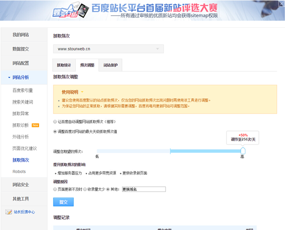 調(diào)整老域名( www.stourweb.cn)的 抓取頻次 讓百度更快速識別301重定向
