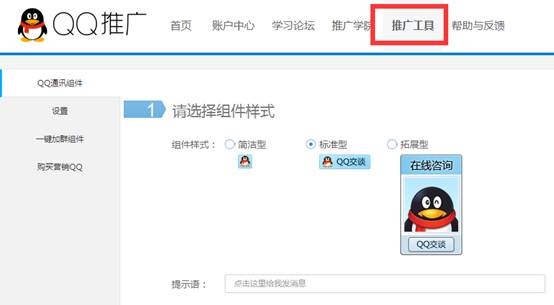 選擇導航欄上的“推廣工具”: