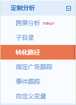 當(dāng)我們設(shè)定了路徑類型的步驟轉(zhuǎn)化時,在百度統(tǒng)計網(wǎng)站報告定制分析中,有一個轉(zhuǎn)化路徑。