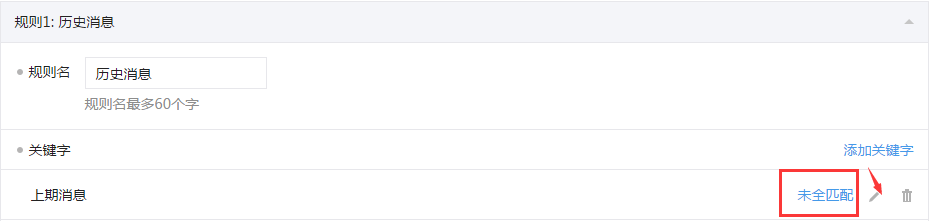 點擊下圖中的筆樣圖標可對關鍵字名稱進行修改,點擊圖5的“已全匹配”可以切換成“未完全匹配”,再次用手機進行測試。