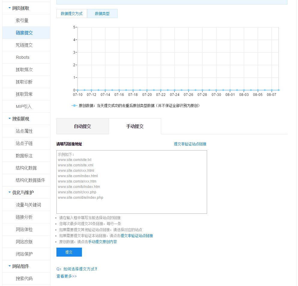 2. 選擇站長后臺左側“鏈接提交”,點擊“手動提交”